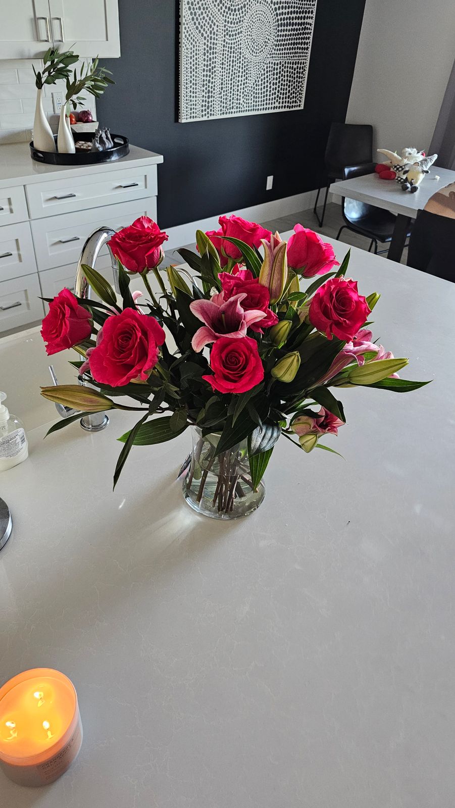 Pink Lilies, Pink Roses & Teddy